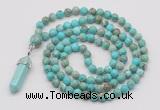 GMN1643 Hand-knotted 6mm African turquoise 108 beads mala necklaces with pendant