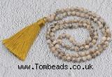 GMN200 Hand-knotted 6mm white fossil jasper 108 beads mala necklaces with tassel