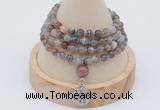 GMN277 Hand-knotted 6mm ocean agate 108 beads mala necklaces with tassel