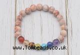 CGB6237 8mm pink zebra jasper 7 chakra beaded mala stretchy bracelets